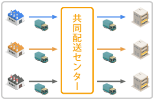 共同配送は、燃料消費量・排気ガスの削減、道路交通混雑の緩和など、環境にも配慮した、効率的な配送システムと言えます。