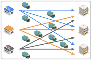 - 配送便の少ない地域への配送、少ない荷物の配送など、時間とコストに無駄が発生